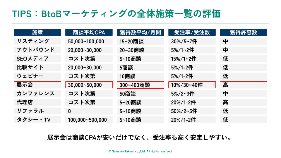セールスのタクミの展示会コンサルティングの特徴と実績